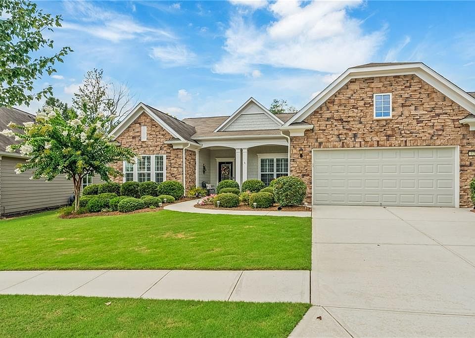 If you’re searching for a highly sought-after floor plan in one of the country's most affordable Del Webb active adult communities, look no further. This well-maintained, one-level Dunwoody Way in Sun City Peachtree is it! Conveniently located within the community, this home features a full stacked stone front exterior (no longer offered by the builder) and a nicely manicured lawn with beautiful landscaping. Stepping inside, the foyer flows easily into the open living layout which includes a great room, dining room and chef's kitchen where large gatherings can mingle with ease. Plantation shutters provide style and privacy throughout the home. Off the foyer, glass French doors grace a flex room which may be used for formal living or an office. The primary bedroom features a tray ceiling, en suite, and a large built-in closet. Completing the bedrooms are an en suite guest bedroom and a third bedroom with an adjacent full bathroom. The 2-car garage has epoxy floors and ample space with a 4-foot-long extension, overhead floored attic space, and enclosed shelving that will remain with the home. If you love the outdoors, that’s where this one wins over other options! The backyard is a private, restful retreat featuring THREE outdoor living spaces: a screened lanai, a covered patio AND an oversized open patio surrounded by additional landscaping and backed by private community property. But life here is about more than your home. Come be a part of a community that is the epitome of comfort surrounded by fun, loving, diverse and caring neighbors who quickly become friends. Your HOA fees include access to a 45,000-square-foot amenities center with a state-of-the-art fitness center, indoor and outdoor pools, pool tables, library, business center, game room, ballroom, even a theater. Outside, you'll find bocce ball, tennis and recently expanded pickleball courts. Also for your enjoyment are walking trails, a softball field, dog park, and playground. If you’re a golf enthusiast, gain access to an 18-hole course within the community with an additional membership fee. Since most yard work is included in HOA fees, you’ll always have time for the fun stuff! With 45+ interest groups and a full-time activities director, boredom simply isn't an option. Golf cart friendly and designed for active adults, Sun City Peachtree is one of Georgia's best kept secrets. What are you waiting for? This home is a must see! Schedule an appointment today!