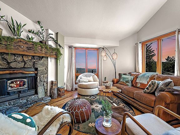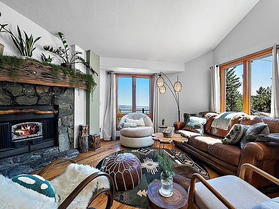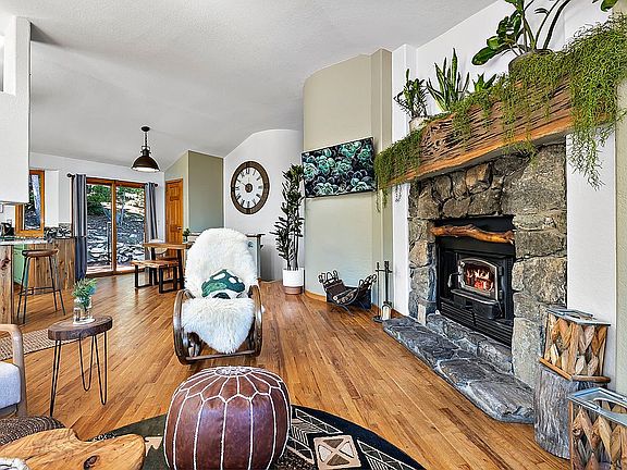 Upstairs you’ll also find the open floor-plan kitchen, with live-edge granite countertops, and updated appliances to make you feel right at home. The kitchen opens to a cozy living room with a wood-burning fireplace and sweeping views of the mountain valley. Step outside for a spacious 900 sqft of deck space with more than enough room to entertain and relax. Here you will have a front-row seat to the beauty of nature, allowing you to immerse yourself in the sights and sounds of the wilderness.