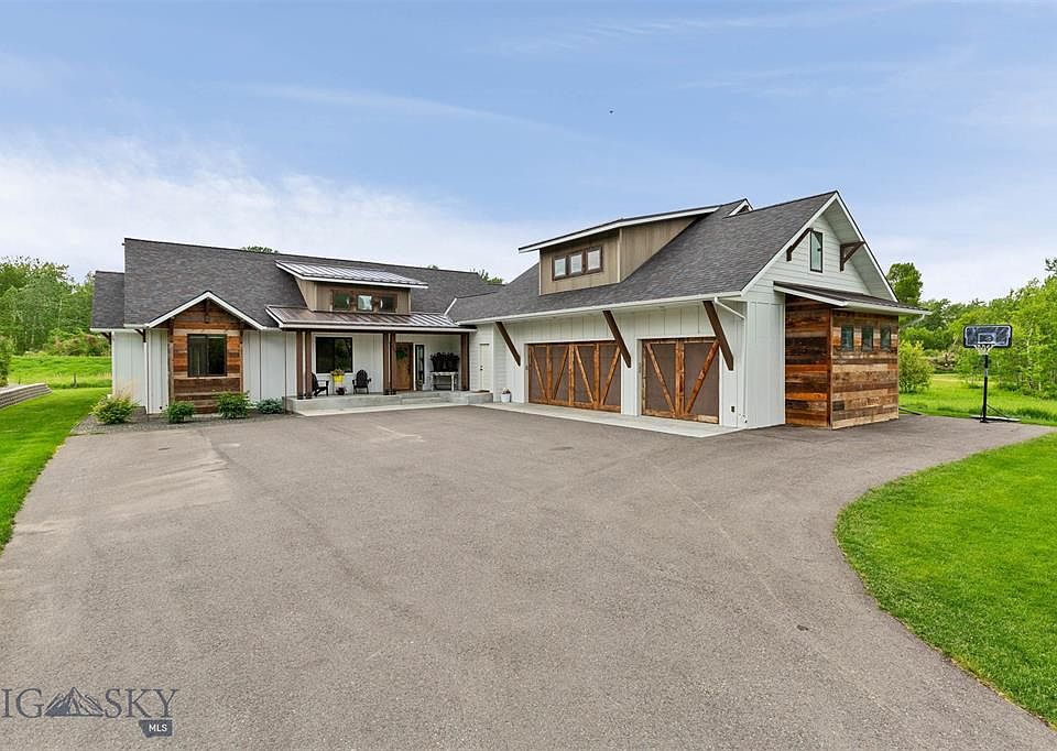 This farmhouse Chic home with clean lines, and rustic wood accents offers a warm and inviting open feel. With big windows and lots of light, this well designed 5 bedroom and 3 bath home takes advantage of the well established trees and wooded backyard, which backs to open space to protect your private setting for years to come. The masterfully designed kitchen with gas stove, quartz counter tops, and large island will meet any chef's needs. The living room features a reclaimed wood fireplace, giving it the highly desired Montana rustic feel. With an office/bedroom just off the living room, and a large master suite separate from the other 3 bedrooms and bathroom on the main level. Don't miss the stairs in the mudroom leading to the large family room and full bath above the oversize 3 car garage. This warm and inviting home maybe just what you've been searching for. A really cool home with central air and underground sprinklers.