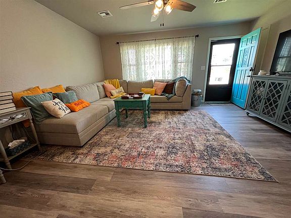 This fully renovated immaculate home won't last long! ALL NEW:Texture & paint throughout the entire home & garage! ALL NEW:Vinyl wood floors, baseboards, hot water tank, light fixtures & outlets. NEW bathroom vanity/marble countertop, toilet, vent covers, kitchen sink/granite counters, faux wood blinds & beautiful curtains! Water softener, fridge, stove, washer/dryer all included! Enjoy scenic views & beautiful sunsets from the backyard! Working fresh water well, storm shelter. Full Home Warranty included!