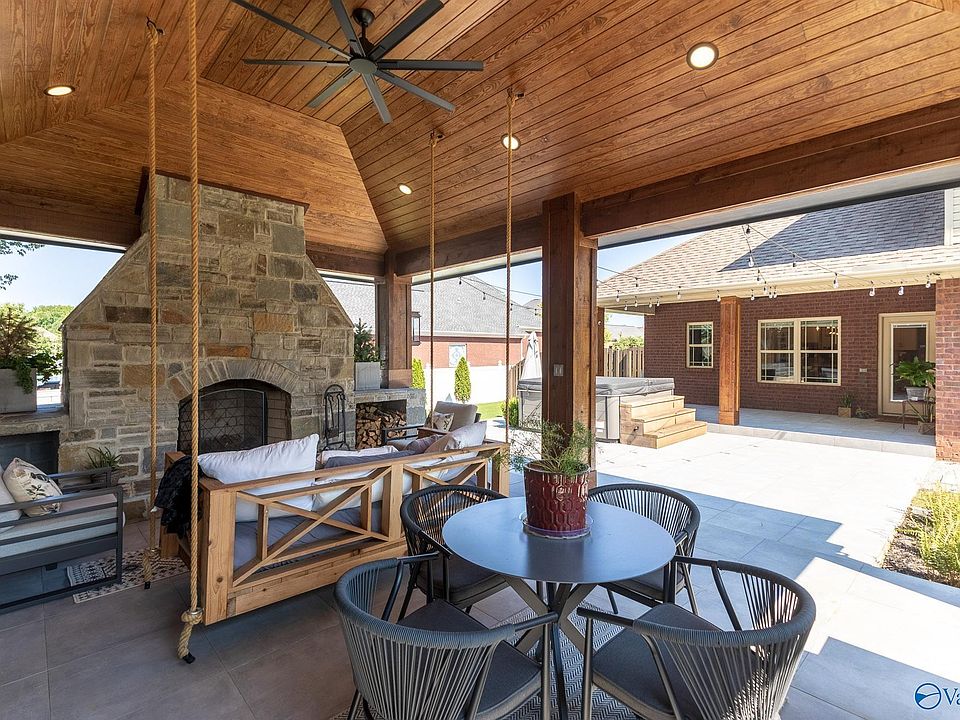 Welcome to your suburban sanctuary with resort like amenities. Fully renovated in 2019, a true gem in this market. Open floor plan with 10'+ceilings and the most beautiful natural light. Gorgeous main living area with gas fireplace trimmed in Italian marble, large sunroom/flex space perfect for sitting area or dining. This eat-in kitchen is a dream with quartz counters, huge working island, gas cooktop, stainless appliances and walk in pantry w wood shelving. Large master suite with a spa like bathroom.Best for last, you'll be lost in time swinging under the stunning pavilion with gas lanterns, outdoor kitchen, bed swing and stone fireplace. All of this in a prime location, a true must see!