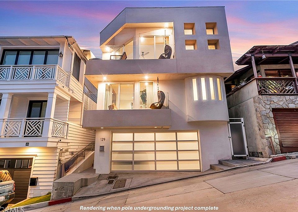 YOUR PRIVATE ARCHITECTURAL CONTEMPORARY BEACH HOUSE AWAITS! BREATHTAKING, PANORAMIC 180-DEGREE WHITE WATER AND COASTLINE VIEWS FROM MALIBU TO PALOS VERDES! MAJOR REMODEL RENOVATION COMPLETED 2021! MODERN FLOORPLAN, ELEVATION AND DESIGN! PREMIUM LOCATION IN THE SAND SECTION OF MANHATTAN BEACH, JUST FOUR HOUSES UP FROM THE STRAND, JUST STEPS TO THE BEACH & BOARDWALK YET ELEVATED TO GIVE YOU THE MOST INCREDIBLE PANORAMIC VIEWS, THE PERFECT LOCATION! 'BRUSH-FREE NEIGHBORHOOD!' JUST MINUTES TO LAX! Luxury and effortless BEACH LIVING converge at 129 Moonstone Street, architecturally stunning, with TEN FOOT CEILINGS, contemporary (2,143 SQ FT) SINGLE FAMILY HOME. (NO HOA!) This rare residence sits quietly WEST OF HIGHLAND on a PRIVATE and QUIET STREET offering the ultimate in exclusivity and tranquility. Inside, nearly every inch has been thoughtfully reimagined for modern luxury, from the ten-foot ceilings and walls of glass to skylights to the wide-plank white oak hardwood floors and designer finishes throughout. The sun-lit, open-concept floorplan is ideal for sophisticated entertaining or laid-back coastal beach days, featuring a state-of-the-art chef's center island gourmet kitchen with quartzite stone countertops, Viking and Sub-Zero appliances, a wine fridge, dry bar with ice maker, and a seamless transition to indoor/outdoor dining on one of four private balconies. Retreat to the palatial primary suite with marble fireplace, TWO WALK-IN CLOSETS, spa-like bath with freestanding tub and oversized shower. ALL THREE BEDROOMS ARE ENSUITES and OVERSIZED with lavish, modern baths, and an additional versatile DEN/OFFICE ADDS flexible space for work or guests. Enjoy peace of mind and effortless living with a fully integrated SMART HOME SYSTEM--security, cameras, Sonos whole-home sound, lighting and climate--all controlled via Apple HomeKit. Additional highlights include a built-in marble fireplace entertainment center in living room, interior laundry room, tankless hot water heater, whole-home filtration and softener, central A/C and heat, recessed and under-cabinet lighting and ceiling fans throughout. The finished two-car garage with Tesla charger and extra storage adds convenience, while a city-funded undergrounding project (now in Phase 3 of 4 phases), promises future value and EVEN BETTER panoramic white water and coastline VIEWS! CAN BE SOLD FURNISHED. CONCESSIONS.