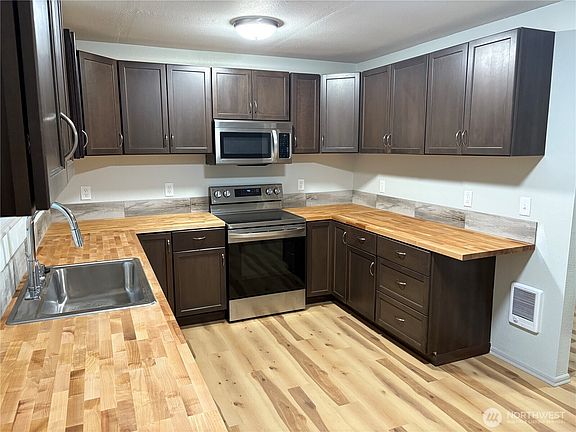 Built in 2022 and presently been remodeled, this three Bedroom, Two Full Bathrooms With Detached Garage. Beautifully constructed and move-in ready, this newly built home features three bedroom, two bathrooms, all new appliances, butcher block counter tops and new cabinets. Enjoy the convenience of a fenced yard and a detached garage, offering extra parking and storage. Located in a prime area close to school, shopping and Wenatchee Valley College-an ideal choice for comfort, convenience, and modern living.