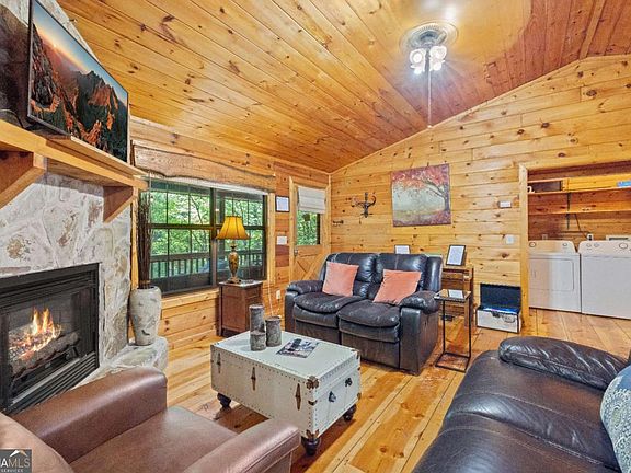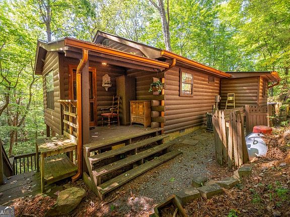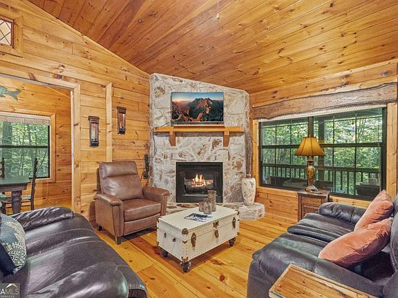 Welcome to your quintessential retreat in the woods! Tucked conveniently between Ellijay and Blue Ridge, this quaint Cherry Log cabin offers easy access and ample parking space, surrounded by the tranquility of peaceful nature. Step onto the wrap-around porch and take in the breathtaking scenery or relax under the stars in the hot tub. Inside, the cabin exudes charm with wide plank real hardwood floors, a beautifully updated kitchen with modern appliances, and a cozy gas stove. Currently a successful rental, this cabin presents a fantastic investment opportunity. It's also perfect as a quick getaway to the mountains or a second home. Coming fully furnished, all you need to bring is your toothbrush! Embrace the serenity and charm of this delightful cabin and make it yours today.