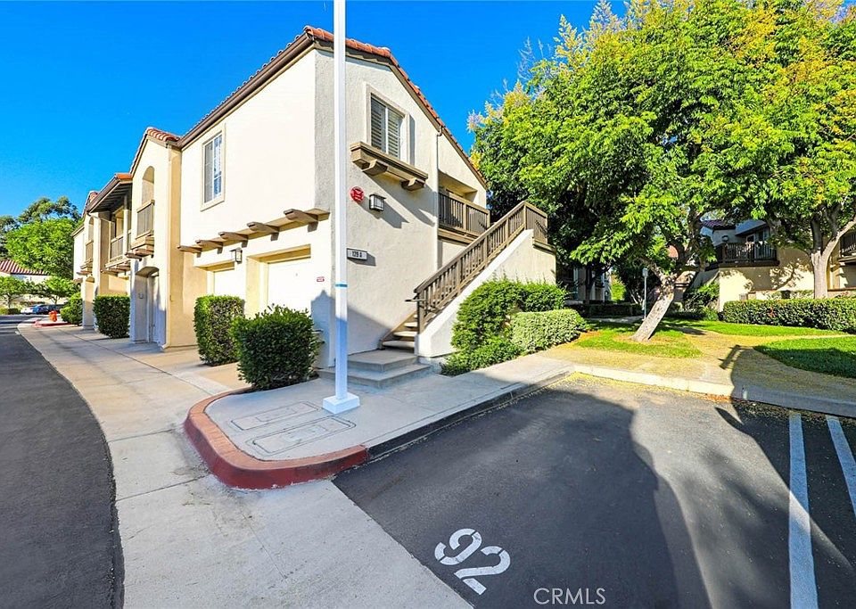 Spectacular corner carriage unit with no one above or below is tucked in next to a lush quiet greenbelt of the Canyon Hills Community. This lovely property features granite counter tops, new appliances, stainless steel sink, tile flooring, recessed lighting, window shutters, newer paint, with a walk-in closet in the primary bedroom. Your own private garage is just steps below the unit. The Canyon Hills Community has fabulous amenities including the resort- style pools, spa, gym and clubhouse. A great location with walking distance to Peter's Canyon Regional Park. You will be near award winning schools, great dining, and easy access to 241 and 261 Toll Roads, Marketplace and the District shopping centers. So much and more to explore! You will not want to miss this!