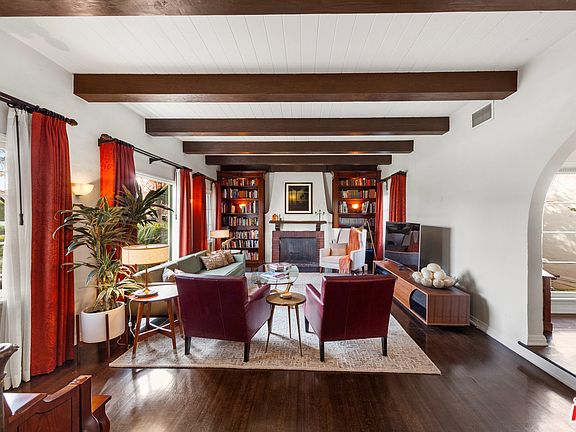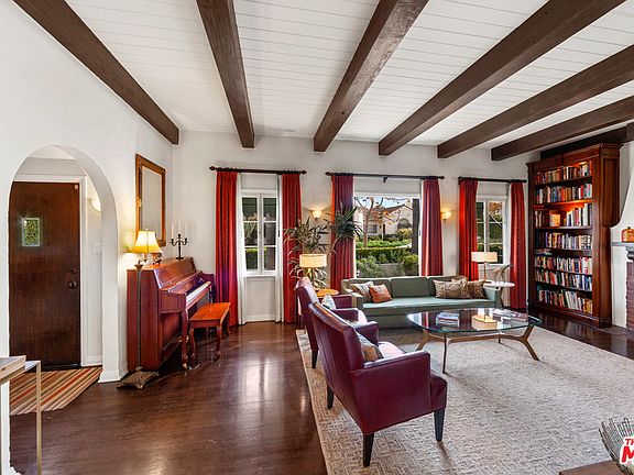 Just a couple blocks to LA's finest restaurants, boutiques, The Grove & the Farmer's Market. This 3 bed & 3 bath home features dark Espresso hardwood floors throughout, a stunning living room with high wood beamed ceilings, gorgeous built-in book cases, French windows & fireplace. The kitchen has been beautifully remodeled with hone granite counters, professional Viking 6-burner stove and convection oven, stainless steel Amana appliances, subway tile backsplash & breakfast nook. Enjoy the Travertine master bath, which features duel sinks, ultra-deep soaking tub and shower. Beautifully updated guest baths with pedestal sinks, designer toilets, showers & tubs. No expense has been spared with skylights, dimmer switches, smart thermostat, central air/heat, and 240volt EV charger in the driveway. The entire property is professionally landscaped with multiple outdoor sitting and eating areas, a very private and grassy backyard with a sparkling pool, spa, & outdoor lighting throughout.