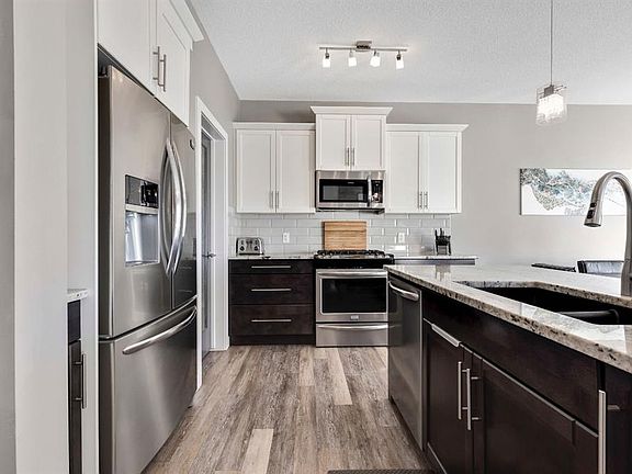 This thoughtfully laid-out home features 4 bedrooms – 3 upstairs and 1 downstairs – along with a spacious bonus room. The bright, open-concept main floor is ideal for entertaining, featuring a modern kitchen with stainless steel appliances, granite countertops, solid wood cabinetry, gas stove, kitchen island, and a generous dining area. The living room includes a fireplace, creating a warm and inviting atmosphere. A 2-piece powder room, functional mudroom with walk-through pantry complete the main level. Upstairs with the 3 bedrooms features a laundry area which makes laundry breeze, along with a bonus room (currently used as a bedroom). Hunter Douglas blinds throughout the home. Downstairs, the fully developed basement offers a large family room, a 4-piece bathroom, and a large private bedroom — great for guests, teens, or multigenerational living. Step outside to a low-maintenance backyard with a tiered deck and pergola, ideal for relaxing or entertaining. The double attached garage (18’ x 23’5”) includes storage space. Located in a family-friendly neighborhood close to parks, walking paths, and amenities, this home checks all the boxes.