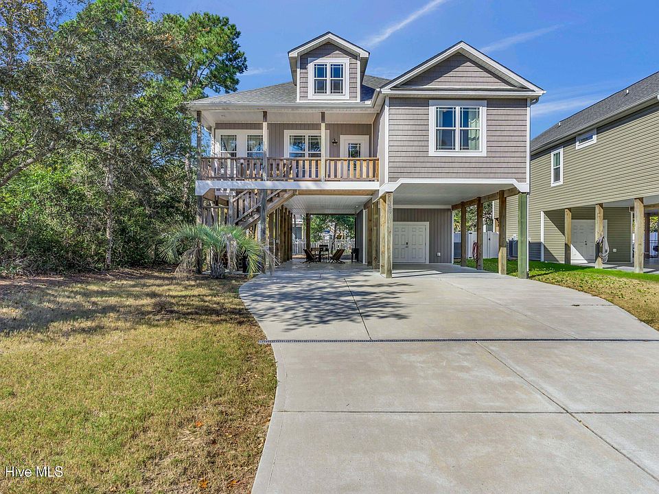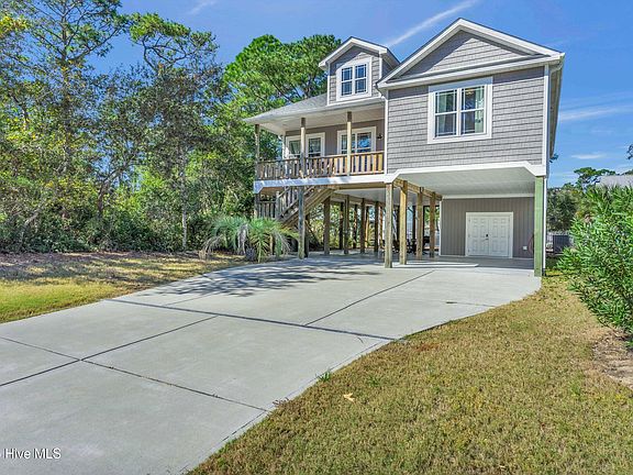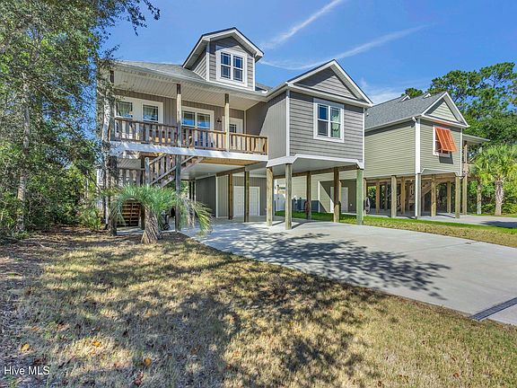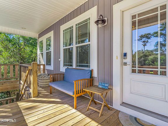 Built in 2021, this beautiful 3 bedroom, 2 bath pilings home offers perfect beach side charm. Ideally located in a prime area on the island with easy beach access, you'll be able to enjoy the complete coastal package. Enjoy breezy afternoons on the covered front porch or unwind on the back deck. Downstairs has plenty of room and a storage area for storing beach gear. The backyard is large and has an outdoor shower. There is plenty of parking as this property has a double concrete driveway. Inside you will find bright and open living spaces with quality finishes throughout. Trey ceilings, arched doorways, board and batten wall trim, touches of shiplap, and LVP floors greet you when entering. The kitchen has white upgraded cabinetry, tile backsplash, under cabinet lighting, stainless steel appliances, lots of storage and island seating. The bathroom has a tiled walk in shower with glass shower door, framed mirrors and double vanity. There is an additional room that can be used for an office. The laundry room is spacious and has a sink. This property is fully furnished and all furnishings convey to the new owner so it is ready to move in or rent. There is so many more features so you have to take time to see this one. This location and quality is rare to find.