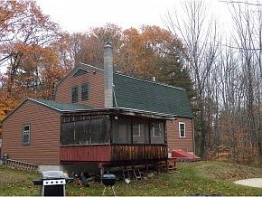Well priced Gambrel with 10.9 acres of woodland. 3 bedrooms up with full bath, living room with wood burning fireplace, first floor office could be bedroom, dining area with propane heater on hearth. Home is in need of updated flooring and some woodwork cosmetics. Attached one car garage with screened porch behind. The sellers will need to find suitable housing so no closings before mid January.