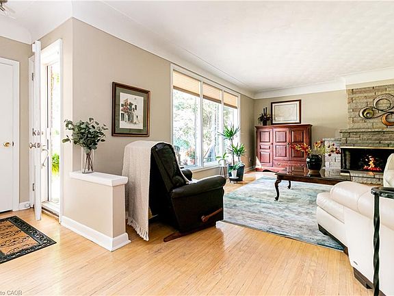 Beautiful Mid-Century home in old Ancaster. Fantastic 1950's back-split; bright, spacious, & designed for family living. Enter and see for yourelf the breathtaking, floor-to-ceiling stone fireplace (gas). Hardwood floors & an impressive wall of windows makes this living room a true stand-out! The main level's open-concept living/dining/kitchen design makes entertaining a breeze. Kitchen/Dining Area features a skylight & convenient walk-out to carport (for easy unloading of groceries!) Step up to the upper level (hallway skylight) with it's 3 bedrooms and family bath (with newer walk-in shower '20), as well as newer broadloom, baseboards & doors ('22). Step down to the 500+ sq ft of the fully-finished lower level featuring a large, bright family room, 2 piece bathroom & laundry room (large utility sink, double closets). With it's own walk-out-and-up separate entrance, the possibilities for this lower level are many! Perhaps a future in-law suite... Office or whatever suits! Of note: roof reshingled '25; furnace, a/c, family room windows '17. Eavestroughs & gutter guards '19. Reach out for full list of updates. This home has been meticulously maintained. With it's deep set-back from the street, this beautiful tree-canopied property offers both privacy & many areas to relax, entertain & play! From the front patio to the large rear garden patio, this pool-sized, fully-fenced garden is just what you'be been looking for. Plenty of parking on long drive and carport. Close to schools, walk to the park, recreational path & movie theatre. Meadowlands has all your shopping needs close by, excellent dining choices await you in the Village of Ancaster, and easy access to 403 and "The Linc". Embrace all that Ancaster has to offer with this charming residence at 129 Oneida Blvd - your future home awaits!