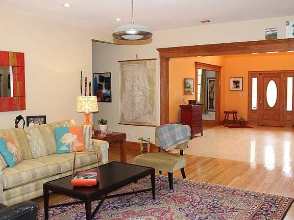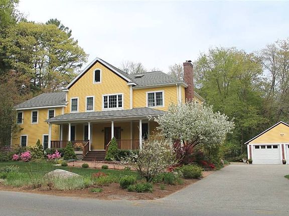 Stunning curb appeal with a grand mahogany farmer's porch and sprawling gardens blooming gorgeous colors! This unique Custom Colonial is appointed with an incredible chef's kitchen equipped with professional grade 4' Garland stainless steel stove which includes double ovens, grill, griddle, and 4-burner gas cooktop, heated marble floors, black pearl granite, center island and incredible cabinet space. Full of light and serene views from the bay window in the breakfast nook with access to the mahogany back deck inviting a beautiful outdoor oasis. Numerous amenities include: marble floors in many rooms, 9' ceilings on the first floor, and mahogany interior doors. One-of-a-kind media room sanctuary right off the main level with 10' ceilings and a 90" wall mounted projection TV as well as built-in book/art shelves and a wall of windows with glass sliders opening to the side yard. Open 2-story foyer, with no staircase, allows for seamless entertaining throughout the entire first floor. Warm
