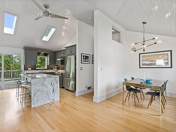 - Din Dscrp: Flooring - Hardwood, Main Level, Open Floor Plan, Skylight, Recessed Lighting, Window(s) - Picture, Lighting - Pendant, Ceiling - Vaulted