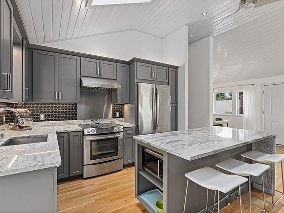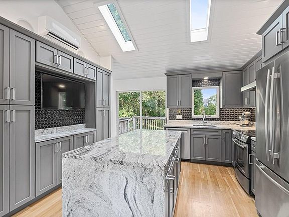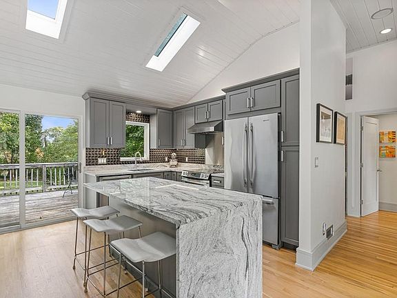 - Kit Dscrp: Main Level, Ceiling Fan(s), Flooring - Hardwood, Countertops - Stone/Granite/Solid, Cabinets - Upgraded, Deck - Exterior, Skylight, Closet/Cabinets - Custom Built, Kitchen Island, Stainless Steel Appliances, Open Floor Plan, Recessed Lighting, Remodeled, Slider, Exterior Access, Cable Hookup, Ceiling - Vaulted