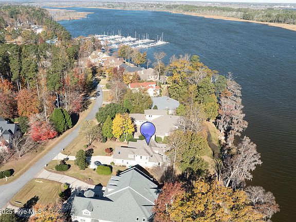 Welcome to a pristine custom home perched directly on the shimmering shores of Chocowinity Bay, flowing gracefully into the Pamlico River. Nestled within the highly coveted Cypress Landing community, this rare waterfront offering invites you into a life framed by natural beauty, thoughtful craftsmanship, and coastal serenity. The moment you step inside, you're greeted by fabulous water views that unfold like a painting-instantly filling the home with calm, light, and possibility. This immaculately maintained residence features 4 spacious bedroom, a versatile bunk room ideal for an office or nursey, and 3.5 beautifully appointed bathrooms. Tall ceilings, gleaming hardwood floors, and a flowing layout elevate every space. A lovely open loft overlooks the foyer-perfect for a quiet reading nook or creative corner. The sunroom bathed in warm natural light, offers the perfect place to savor slow mornings or relaxing afternoons. Step outside to an enjoyable deck made for gatherings, laughter, and breezy evenings. The beautifully landscaped yard leads gracefully to a patio and steps that guide you to the water's edge. Homes of this caliber and on this shoreline are seldom available. This is your chance to own a property that blends comfort, elegance, and unforgettable views in one remarkable package. Enjoy an exceptional array of amenities including, a full service marina and boat docks, a fitness center with lap pool, a larger community pool overlooking the clubhouse, tennis and pickleball courts, and so much more. Offered for 889,900.