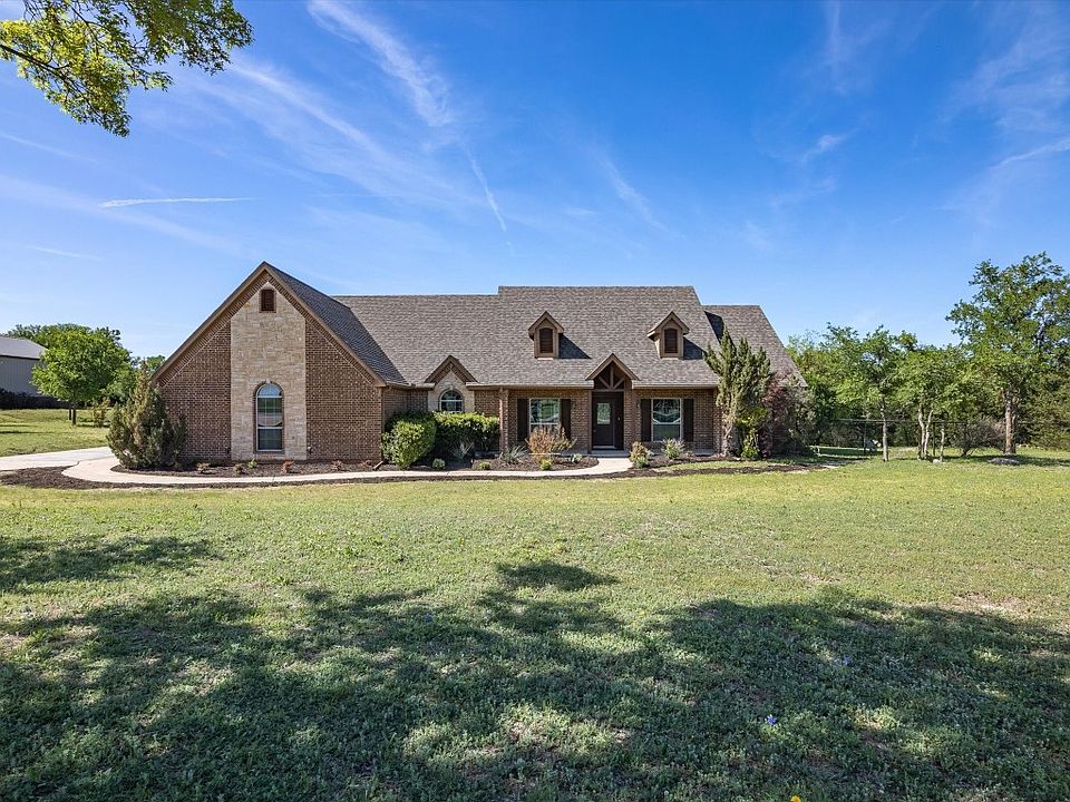 Enjoy the Texas sunset on this expansive covered patio while overlooking a gorgeous waterfall pool and 2.5 acres of land. This modern farmhouse is nestled into a private, gated community and within walking distance to Silver Creek Elementary ~ Open floor plan flooded with natural light! ~ Large, inviting living room with Pool views from both living & dining ~ Gourmet kitchen offers stainless appliances, a kitchen island, bar, quartz countertops, beautiful backsplash, and an abundance of cabinet storage. ~ Large master bath has dual vanities, soaking tub, walk-in double shower, expansive closet with built-in & access to laundry room ~ 4 bdrms with a flex room for an office or second dining and to top it off it has a second living room upstairs with a built-in bar for entertaining.... or could be extra bedroom or whatever you make it!