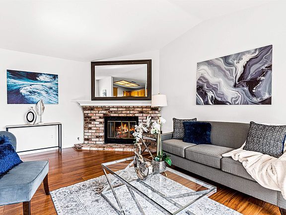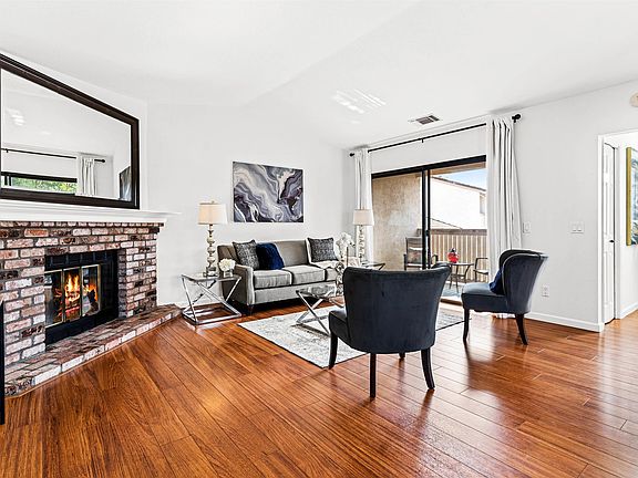 Enjoy luxury living in the heart of downtown Pleasanton! Corner top floor unit offers an open floor plan and vaulted ceilings. The open architecture bathes the living spaces in natural light. Kitchen has been tastefully updated with spacious cabinets and stainless-steel appliances. Newer paint and engineered hardwood floors throughout. Both primary suites have a large walk-in closet and updated bathrooms with solid-surface counters/shower enclosures and tile floors. You can relax inside by the cozy fireplace or looking at tree lined ridge views from 3 different balconies. AC replaced in 2022. Enjoy the convenience of the in-unit washer and dryer. Private one car garage along with one designated covered parking spot. HOA covers water, trash and exterior maintenance. Walking distance to shopping, restaurants, and outdoor activities for everyone. Award winning Pleasanton schools. You don't want to miss this!
