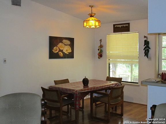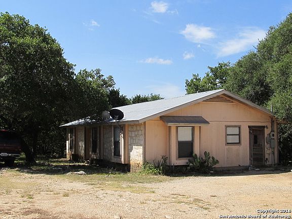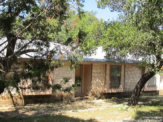 Enjoy country living close to Boerne on private 2.38 acre lot w/beautiful mature trees and Homeowners Park with access to Guadalupe River. Floor plan is open with high ceilings, living area flows into dining area. Master is split for privacy and secondary bedrooms are nice size. Utility room is inside, spacious and located off of kitchen. Outbuilding is used as storage bldg. Perfect opportunity to make this your peace of heaven. Not many homes under $200K in Boerne and on acreage!