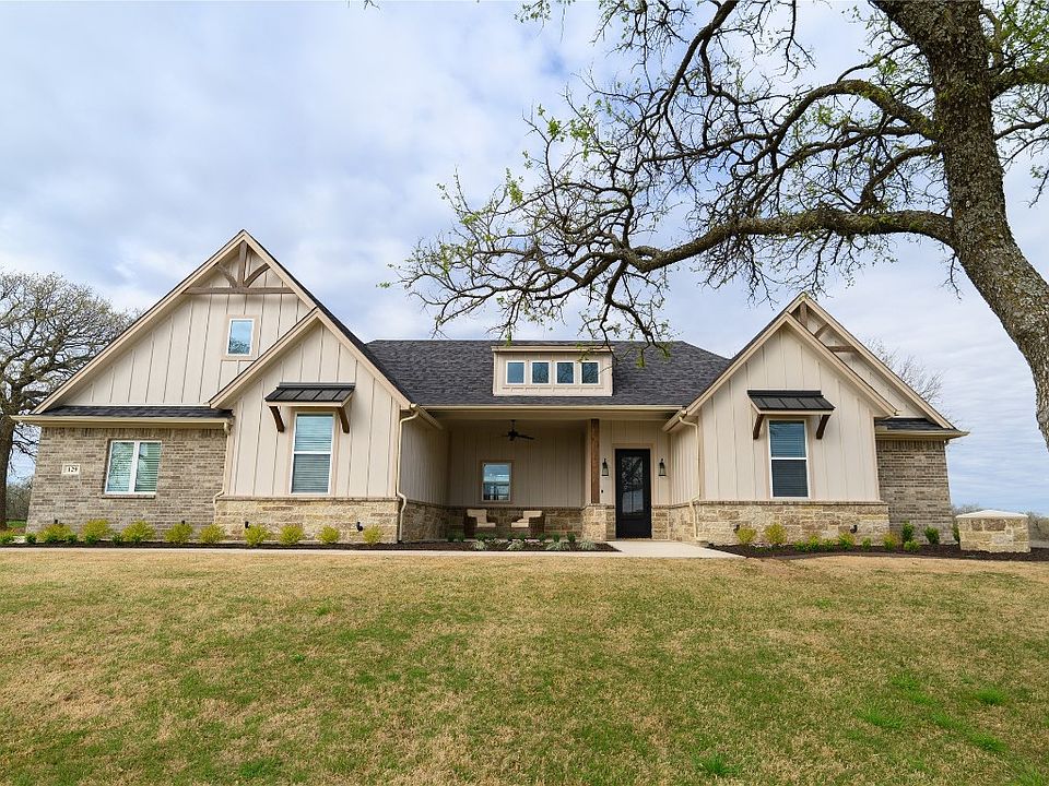 Almost new! Beautiful open concept custom home on private 2 acre premium lot with mature trees and 3 car garage in highly sought after Las Brisas. Impressive entry with 8 ft iron speakeasy style front door, herringbone tile and shiplap wall. Natural light fills the living room from three 8’ windows and vaulted ceilings with exposed beams. Complete with limestone gas fireplace & audio prewired. Gourmet kitchen includes shaker style cabinets, quartz counters, farmhouse sink, double ovens, walk-in pantry & designer lighting. Spacious MBR with luxury en-suite: walk through shower, dual vanities, dual shower heads, soaker tub and custom closet. Large secondary bedrooms each include a full bath & walk in closet! Game room with half bath and back porch access. Covered front & rear porches with great views and exterior fireplace. Backyard graded and ready for pool and-or shop! Wood look tile throughout, 8’ interior doors, 10’ + ceilings, and full foam encapsulation. Under builder warranty.