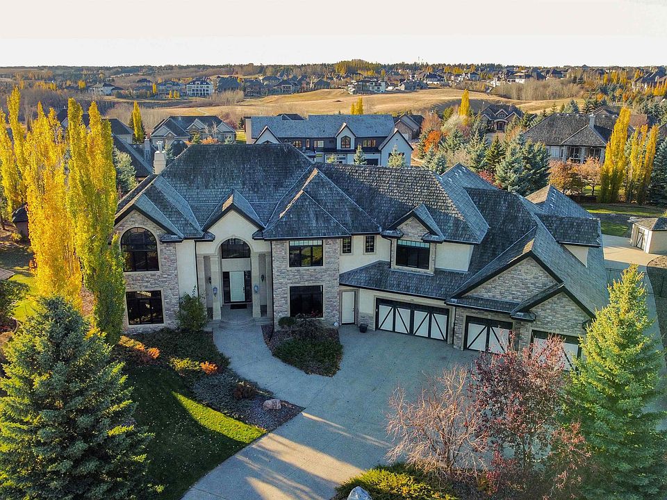 Luxury in prestigious Riverstone Pointe! This 6173 sqft 2 storey awaits a new owner. The living room is stunning w/ a 2 storey stone gas f/p, coffered ceiling, HARDWOOD flooring & windows overlooking the yard. The kitchen has cabinetry w/ crown molding, under cabinet lighting, granite counters, tile backsplash & an eating bar island. The dining room is spacious- perfect for hosting. The office has large windows & a 2 sided f/p leading into the LIBRARY. Completing the main floor is a sun room, 2pce bath & 3pce bath. The 2nd floor has a family room w/ built in shelving, 4 bedrooms (2 w/ their own ensuite), a 6pce jack & jill bathroom & a laundry room. The basement feat. a spacious rec room w/ gas f/p & built ins on either side, wet bar w/ eating bar island & WINE ROOM. The theatre room is just off the wet bar. A gym, 5th bedroom & 3pce bath complete the basement. Enjoy summer in the beautiful yard w/ a deck, hot tub, stone patio, SWIMMING POOL & firepit. A HEATED attached 10 CAR GARAGE completes this home!