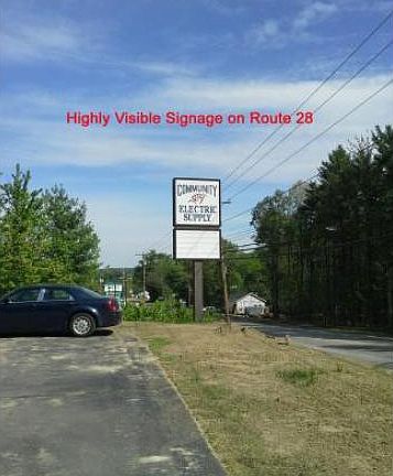 Hard to find showroom/office/warehouse building located on busy retail route. 18,000 SF +/- facility is located directly on Route 28 (Rockingham Road) in Derry and has components of office, retail, showroom and warehouse. Front retail or showroom area (10,000SF), a separate entrance for pickups and a rear area for storage, warehousing or assembly/manufacturing area. 8,000 SF of second floor mezzanine/office area for additional storage, office or other uses. 2 dock doors as well as a smaller forklift ramp overhead door. 2 restrooms, one with shower. Previous occupant was a long running electric and lighting store and supplier. Rear warehouse area has ceiling heights of up to approximately 23'. 3.46 acres and has plenty of parking in front for customers and large paved and fenced area in rear to allow outside storage and deliveries. There is also an outside storage building with three ground level overhead doors. New muni water & sewer lines in street. Owner will consider lease too.