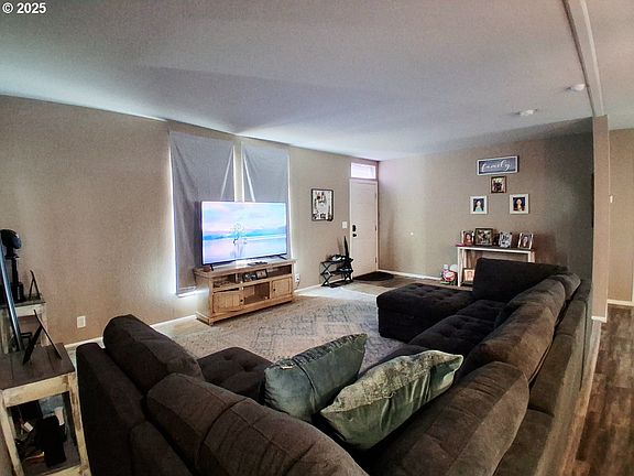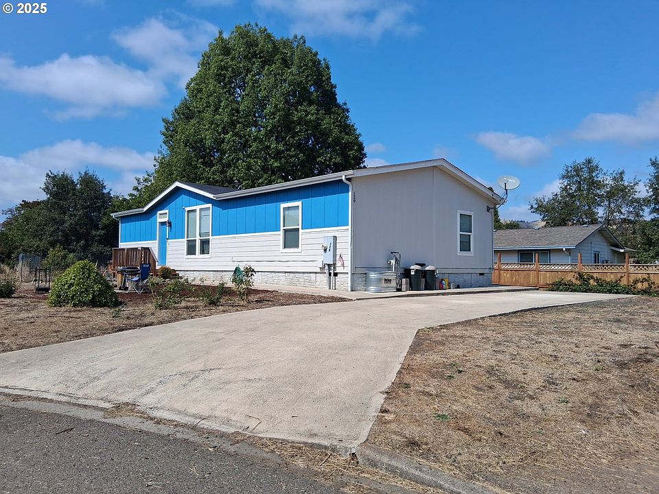 Welcome Home! This 2016 manufactured home offers the perfect blend of comfort and convivence, all on its own land with low county taxes!! Featuring a desirable split-floor plan, the home boasts a spacious open-concept kitchen and living room, ideal for entertaining or cozy evenings in. The kitchen features a stunning live-edge island, gorgeous cabinetry and a stainless-steel refrigerator. En-suite primary bedroom with vaulted ceilings, dual sinks, walk-in shower and a beautiful soaking tub. Each nice sized bedroom features a walk-in closet, offering plenty of storage. The laundry room includes a convenient dog door, while the barn-style sliding door adds charm to the utility space. Outdoors, comes with a fenced back yard and enjoy the cozy front yard fire pit, perfect for gatherings! Located in a cult-de-sac and close to all amenities!! Check it out!