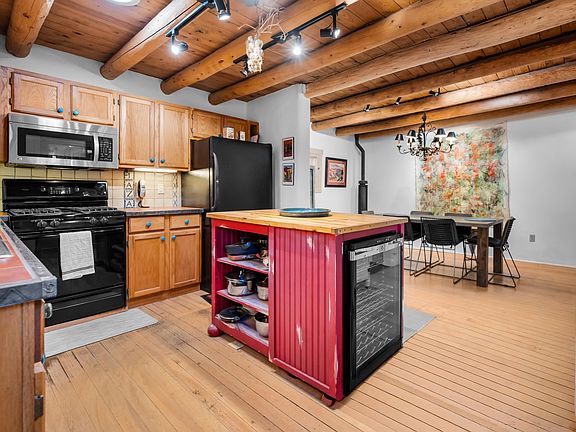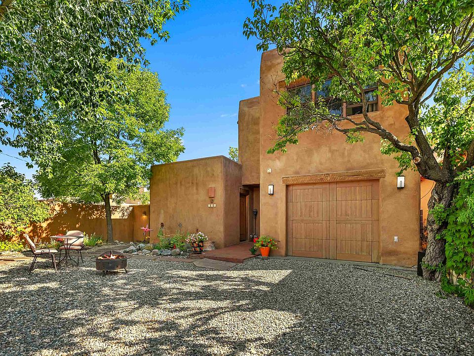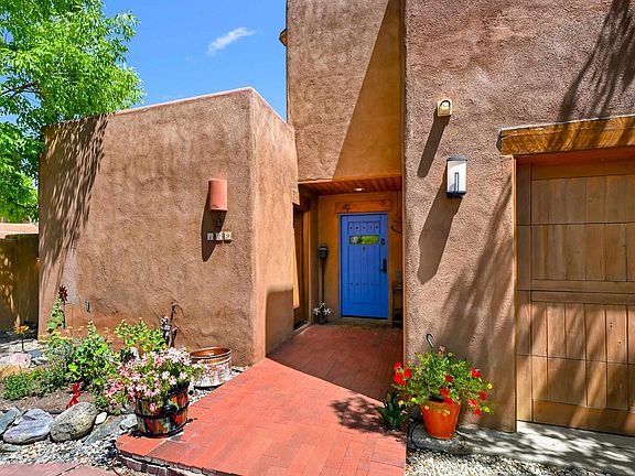 Picturesque In-Town Retreat, 3 Bedrooms | 3 Baths, 2,206 Sq Ft, 1-Car Garage, Walk to Taos Plaza Tucked behind a private walled garden just steps from historic La Loma Plaza, this distinctive pueblo-style home captures the soul of Taos—where old-world charm meets modern comfort. Nestled on a corner lot shaded by mature trees, this in-town sanctuary offers both serenity and convenience, only a short stroll from Taos Plaza, Bent Street’s galleries, local shops, and some of the area’s best dining. From the moment you enter, you’ll feel the warmth and personality that define this special property. The spacious living room, anchored by a classic kiva fireplace, invites cozy evenings and lively gatherings. French doors open to a covered portal and expansive flagstone patio, creating a seamless flow between indoor and outdoor living—perfect for morning coffee, al fresco dinners, or stargazing under the clear Taos sky. The kitchen is playful yet refined, with handcrafted details and cheerful color accents that make it a joyful space to cook and entertain. An intimate dining room just off the kitchen sets the stage for everything from casual family meals to elegant dinners with friends. Downstairs, a guest suite with French doors opens to a private patio enveloped by greenery—an ideal spot for quiet reflection or reading in the shade. Upstairs, the primary suite is a true retreat, complete with a sitting area and a cozy office nook—perfect for writing, dreaming, or simply watching the light change over the mountains. A third spacious bedroom offers room for guests, children, or creative pursuits. The rooms of this home are filled with natural light that highlights the warmth and texture of classic Taos architecture. Windows offer glimpses of private courtyards, adobe walls, and intimate garden spaces, creating a quiet connection to the outdoors. Mature trees cast soft, dappled shade across the property, enhancing the sense of privacy and calm. Though just steps from the energy of town, the home feels like a world apart—a peaceful refuge in the heart of Taos. Enjoy the convenience of an attached garage for your car and skis, and when adventure calls, you’re just 19 miles from world-class Taos Ski Valley and only minutes from hiking trails and outdoor exploration. Whether you’re looking for a sophisticated full-time residence, a luxe weekend getaway, or an investment in one of Taos’s most desirable neighborhoods, this home delivers a lifestyle that’s both inspiring and effortless. Experience the magic of in-town Taos living—private, peaceful, and perfectly placed.