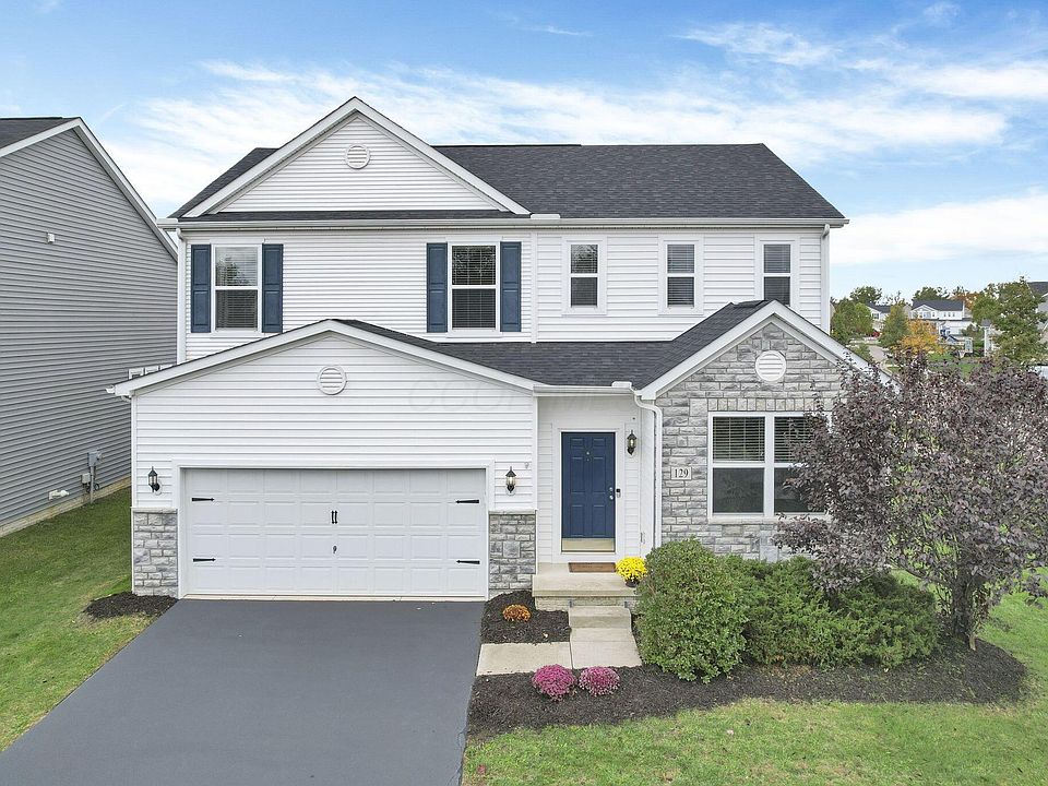 Welcome to 129 Schellinger Street, a beautifully maintained 3-bedroom, 2-story home in the desirable Heatherton neighborhood of Delaware. The main floor features an open-concept kitchen & living area, along with a second living space & a half bath. The kitchen is outfitted with stainless steel appliances, dolomite countertops, a tile backsplash, a central island, & abundant white cabinetry. The living room is highlighted by a gas log fireplace & tasteful shiplap accents. Upstairs, you'll find two guest bedrooms, versatile loft (which could be converted into a fourth bedroom), full guest bathroom, convenient laundry room, & a spacious primary suite complete with a dual-sink vanity, large tiled shower, & walk-in closet. The full unfinished basement offers room to expand, featuring an egress window & plumbing rough-ins for a future bathroom. Outside, enjoy the fenced backyard with a stamped concrete patio & gazebo—perfect for relaxing or entertaining. This home offers a functional floor plan, desirable features inside & out, and a prime location close to schools, parks, restaurants, shopping, & Historic Downtown Delaware.