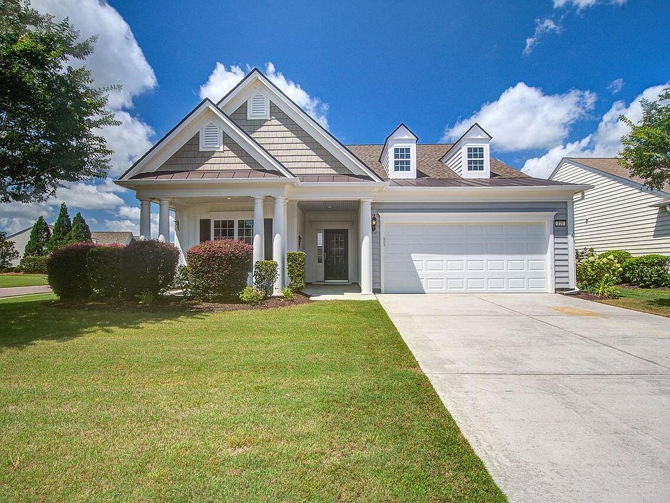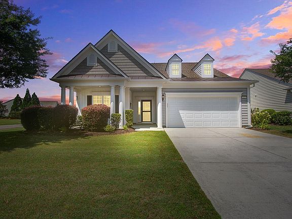 Easy One-Level Living in Sought-After Del Webb 55+ Gated Community! Welcome home to effortless living in this beautifully designed ranch-style home nestled in the highly desirable Del Webb active adult community. From the moment you arrive, the full front porch offers a warm Southern welcome--perfect for relaxing with morning coffee or greeting neighbors.Step inside to discover an inviting open layout with gleaming hardwood floors throughout the main living spaces, a cozy fireplace feature, and a formal dining area accented with timeless wainscoting. Sunlight pours in through large windows into the sunroom, creating a bright, cheerful ambiance you'll love coming home to.Home features a premium Bose surround sound system in both the living room and master bedroom, complete with allcomponents for an exceptional audio experience throughout your space. The spacious kitchen is a cook's delight with abundant cabinetry, stainless steel appliances, and ample counterspace ideal for everyday living or entertaining guests. Retreat to the private serene primary suite, thoughtfully designed with refined architectural touches including tray ceiling. The en-suite bathroom features a large vanity, walk-in shower, soaking jetted jacquzzi and plenty of closet storage, blending comfort and convenience. Two additional bedrooms offer flexibility one with cozy carpeting for guests, and the other with hardwood floors and built in dual desk area, perfect for use as a home office or den. A well-appointed second bathroom with a walk-in shower serves both spaces. Step outside to your glass-enclosed sunroom, where you can enjoy peaceful lakefront views year-round. The adjacent patio with a pergola creates the perfect spot for grilling, entertaining, or simply enjoying the beautifully landscaped surroundings. BONUS FEATURE: This home includes a Generac whole-house generator, providing peace of mind and uninterrupted comfort no matter the weather. 129 Schooner Bend offers the best of low-maintenance, resort-style living with Del Webb's unmatched amenities and a strong sense of community. Whether you're relaxing indoors or enjoying the scenic outdoors, this property is a standout choice for those seeking both comfort and lifestyle.