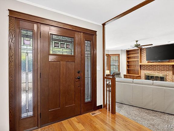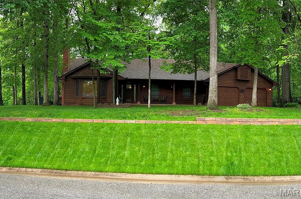 Welcome to 129 Sir Lawrence Dr, perfectly situated on a quiet cul-de-sac with a wooded lot and a tranquil backyard retreat. This charming home greets you with a welcoming front porch and a brand-new composite deck and stamped concrete patio (2024) overlooking a vibrant pollinator garden filled with wildflowers. Inside, the kitchen is bathed in natural light from a skylight and offers generous cabinet space, creating a warm and functional hub of the home. Spacious living areas feature both a wood stove—perfect for cozy winter nights—and a functional traditional fireplace for added charm. Thoughtful updates and features include custom blinds, a large adjustable TV mount, new Aeration Septic with new Drainage Pipeline (2025), spacious sunroom and abundant storage with both garage and attic space. The newly replaced HVAC system (2024) adds efficiency and peace of mind. Conveniently located near shopping, dining, and essential services—including Walmart, Dierbergs, Lowe’s, Menards, gas stations, and restaurants—this residence offers a harmonious balance of comfort, character, and natural surroundings.