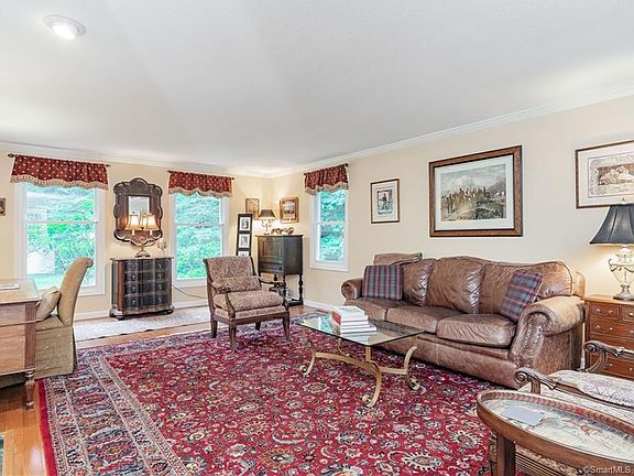 Step into this beautifully refreshed Colonial with a recently painted exterior and mostly repainted interior. Enter the 2 story foyer leading to the large living with with one of 3 fireplaces and newly installed HW floors. French doors lead into a cozy sunroom (currently the perfect home office with warm wood paneling, vaulted ceiling and skylite. The floorplan flows easily into the family room with another wood burning fireplace and French doors leading to a private deck. Next is the sunny updated kitchen which has lots of creamy painted cabinetry, granite counters, new stainless appliance (except refrigerator which is newer plus an island and pantry closet. There is a comfortable eating area with sliders to the deck. Off the kitchen you will find a convenient laundry area plus a 2nd half bath on this main floor. There is also the much coveted mudroom leading to the attached 2 car garage (with new garage doors. Upstairs (which has been newly carpeted you will find a large cedar closet, 3 good size bedrooms, a spacious hall bath with double sinks and lots of storage. Then find the generous sized master suite with another fireplace, private en-suite with double sinks plus a walk-in closet. That's not all. Continue to the lower level with additional space for all. Perfect for everyone with lots of built-in storage, plus built-in desk area as well as another full bath and suana. Extras includes 4 zone oil heat, 3 zone A/C plus gutter guards. Nothing to do but move right in