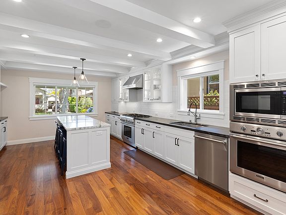 3200 sqft, 5 bedroom, 4.5 bath home. Fully renovated kitchen and baths. Two master suites, one upstairs and one downstairs, plus three additional bedrooms. Open floorplan with kitchen perfect for entertaining and living space flowing out onto the new back deck. Hardwood floors, Thermador stainless steel appliances, recessed lighting and built-in Sonos speakers downstairs and outside. Ultra fast Eero wi-fi network with boosters throughout. Wine refrigerator. Layout includes master and one bedroom with ensuite bath downstairs; family room, second master and two additional bedrooms upstairs. Both masters have walk-in closets. Separate laundry room with extra large washer & dryer. Two car attached garage has tons of storage with built-in cabinets and rafter area. Updated exterior with great curb appeal. Backyard is fully fenced with deck, lawn and professional landscaping. Easy walk to Burlingame Ave and Caltrain; 10 min from SFO. Top Burlingame schools: Washington, BIS, BHS. Available Sept 1st. Minimum one-year lease. Owner pays for gardener; tenant responsible for other utilities. Pets okay upon approval and with additional deposit. Owner pays for the gardener, renter is responsible for all other utilities. Pets are allowed. 1 year lease.