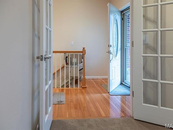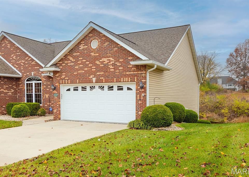 THE VILLAS OF STONEBRIDGE COMMUNITY OF MARYVILLE - This home features a large entry way, front guest bedroom with a full hall bathroom. You will love the beautiful dining room/living room with hardwood floors, bookcases and brick floor to ceiling gas log fireplace that opens to a lovely kitchen with granite countertops, ceramic backsplash, maple cabinets and gas stove. Relax in the cheerful sunroom and look out at the peaceful pond. Do not miss the large primary suite and bath with dual sinks, whirlpool tub, separate shower and walk in closet. There is a main floor laundry off the garage. In the lower level you will enjoy a third bedroom with large walk in closet, third full bathroom, large family room, second brick, gas log fireplace, wet bar area with space for a refrigerator, furnace room & workshop room. Walk out to the large patio (24' x 11') and enjoy the view of the pond. Some Updates: Furnace/ac & hot water heater 2023, Roof 2017 and updated windows. Call your favorite agent now for a showing. Close to walking/bike trails, interstates, shopping.