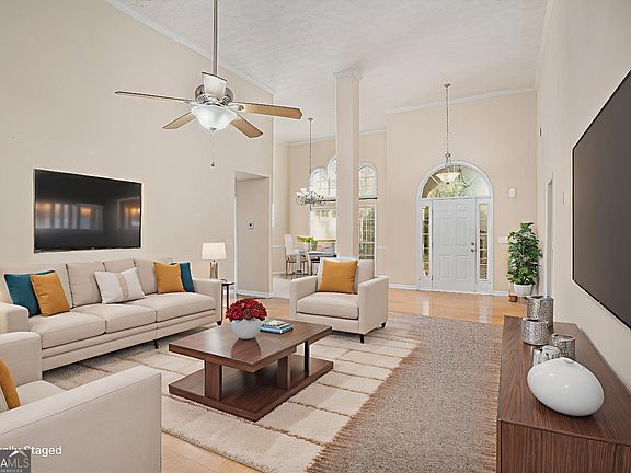 Beautiful 4BR/3.5BA home on a private 0.64-acre lot in Lakeside @ Eagles Landing! Features a 2-story foyer, vaulted family room w/fireplace, and formal dining for 12+. Spacious kitchen w/breakfast area & bar. Main-level owner's suite offers a fireplace, sitting area, patio access, dual vanities, his & hers closets, soaking tub & separate shower. Upstairs bedrooms include a private guest suite. Enjoy lake views, patio, sprinkler system, and 2-car garage. Quiet setting near shopping, dining, and top-rated Union Grove schools!