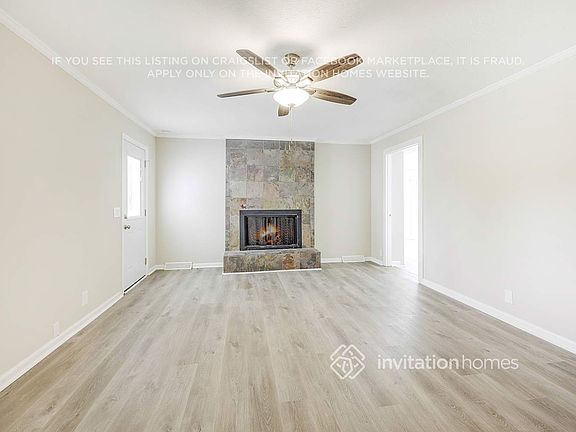 Home Features and Amenities: Air Conditioning, Covered Porch, Fenced Yard, Fireplace, Garage, Granite Countertops, Long Lease Terms, Luxury Vinyl Plank, Patio, Pet Friendly, Smart Home, Stainless Steel Appliances, Tile, W/D Hookups, and professionally managed by Invitation Homes.