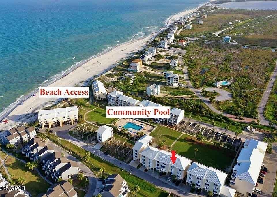 GULF VIEW, EXCLUSIVE, INVESTMENT PROPERTY.... Welcome to your dream beachside GULF VIEW retreat nestled in the exclusive gated community of Seacliffs on the sought-after North Cape San Blas! This stunning townhome spans four floors of luxurious living space with elevator servicing all floors, designed for creating unforgettable family memories. The top floor invites you to a spacious living area, a modern kitchen, and a dining room, all comfortably decorated to host cherished family gatherings. On the second and third floors, you'll find two bedrooms each with private bathrooms, ensuring everyone enjoys their own space and comfort. The two master bedrooms are a highlight, featuring private decks with breathtaking Gulf views - the perfect setting for sipping morning coffee or watching the sun set over the horizon. This home includes a private elevator that services each level, providing both convenience and accessibility. Enjoy serene Gulf views from any of the three expansive decks and enjoy the community pool, playground and green space, ideal for relaxation and entertainment. Don't miss this incredible opportunity to own a family vacation home at Cape San Blas. Experience the best of coastal living in this beautiful beachside townhome!