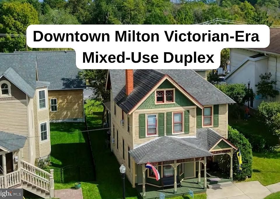 Step into history and opportunity in the heart of Downtown Milton! This Victorian-era mixed-use property with Town Center zoning offers the perfect blend of character, versatility, and visibility for your next venture. Built in 1905 with approximately 2,200 square feet, this home showcases timeless details like intricate millwork, hardwood floors, stained-glass windows, and clawfoot tubs. Currently home to a comic shop and private residence, the property features 4 bedrooms, 2 bathrooms, an office (the location of Milton's first switchboard operator), a spacious unfinished attic, front porch, and a peaceful, bright sunroom with skylights and exposed beams that overlooks the landscaped yard backing to Milton Memorial Park and the Broadkill River. Milton's Town-Center zoning allows you to operate your business on the main level while living upstairs, or convert to a stunning single-family residence or semi-detached residence. Light commercial business operations include, but are not limited to, retail, hair salon, coffee shop, restaurant, art gallery, museum, school, and many more. Positioned next to the Milton Library and just steps from Milton’s shops, restaurants, and community events, this property offers exceptional exposure and charm and is an opportunity for entrepreneurs, investors, and anyone dreaming of owning a piece of Milton’s history in the thriving town center. Conveniently located with ample parking directly across from the town parking lot and adjacent to Milton Memorial Park, plus two parking spots in the back of the home and two unassigned parking spots in front. Although the comic shop is an operating business, an appointment with a real estate agent is required to see the entire home.