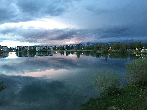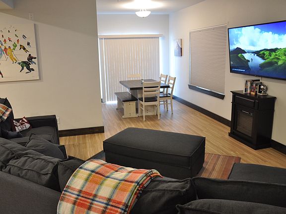 Beautiful 2 bedroom 1 bath condo on the second floor of the Waterside Building on the River Rock Pond. This building has key fob access and beautiful views! Condo is 1294 SF and features great custom upgrades. 1 year lease. One small dog negotiable.