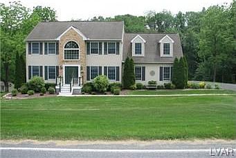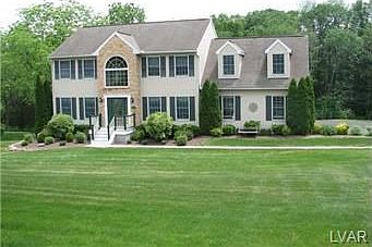 Beautifully maintained center hall colonial in Nazareth School District being offered by original owners. 4 good sized bedrooms with plenty of closet space, new deck and front entry with fresh paint throughout. Great view overlooking stream and wooded hillside. Large yard with plenty of room for all your outdoor activities. Full daylight basement ready for finishing. First floor laundry room. Large eat in kitchen with center island open to family room with propane fireplace and french door leading to the deck.