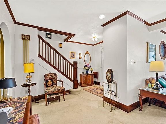 So much potential in this charming and extremely well-maintained 3-bedroom home in Munhall. This all-brick gem, situated on a convenient and quiet street, has tons of original character and beautiful woodworking throughout. With a little upgrading, this home could be made into something truly spectacular! The stained-glass windows, crown molding, and high-end lighting fixtures are beautiful and in pristine condition. Seller noted that there is hardwood flooring under the carpets, so imagine the transformation once those are uncovered! There is an inviting enclosed front porch with vast views. Main level has a kitchen, dining room, and living room that are ideal for entertaining. Upstairs has 3 bedrooms and a full bathroom. Storage throughout, including two WI closets. Fall in love with the flat and fenced-in yard and enjoy relaxing on the lovely covered patio. Basement is partially finished and features tons of storage closets and a 14x7 ft dream workroom in the basement for tools.