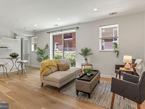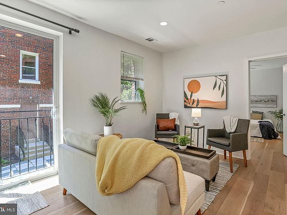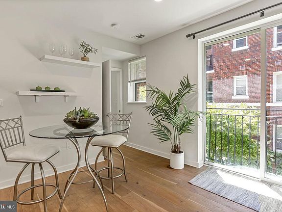 This stylish second-floor condo offers modern finishes and a smart layout in a prime NW DC location. Enjoy wide-plank oak floors, large windows, and a Juliet balcony overlooking a gated private courtyard. The high-end kitchen features quartz countertops, an Italian tile backsplash, a center island, and a Bosch appliance suite with a gas cooktop and vented hood. Bedrooms are positioned on opposite ends of the unit for added privacy ideal for roommates or a home office setup. The primary suite includes a walk-in closet and an ensuite bath with a glass walk-in shower. The second bedroom connects to a full bath with a soaking tub and also overlooks the courtyard.