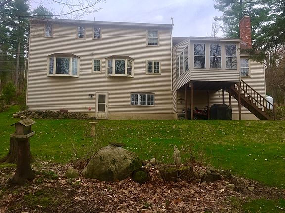 THROW OUT THE SHOVEL & SELL THE SNOW BLOWER! This meticulously maintained Gambrel has a state of the art HEATED DRIVEWAY & WALKWAY! Stays clear of ice & snow so you'll never have to worry about plowing again! This well-maintained home is freshly painted with a neutral palette ready for your personal statement! Two big picture windows in the eat-in kitchen & living room overlook a private back yard. Sunny & bright eat-in kitchen with oak cabinets, peninsula and breakfast nook. Formal dining room currently used as an office, with maple floors. Spacious family room with country flair accented with white bead board wainscoting & walnut random width plank floors, masonry fireplace with easy to use gas insert. Step out to the 3 season screened porch where the sound of birds & a brook offer a peaceful place to relax. The second floor has 3 bedrooms with a spacious MBR with maple floors, spacious walk-in closet & 3/4 tile bath. Two additional BRs with a full tile bath & linen closet. The full, unfinished walk-out basement offers a workshop space, shelving for storage and water filtration systems to ensure quality drinking water. The private back yard has two foot bridges over the brook to a garden space. Convenient location, close to schools, dental & medical services, Goffstown village stores & under 15 minutes to downtown Manchester! Enjoy walking and cycling for miles along Goffstown's rail trail system!