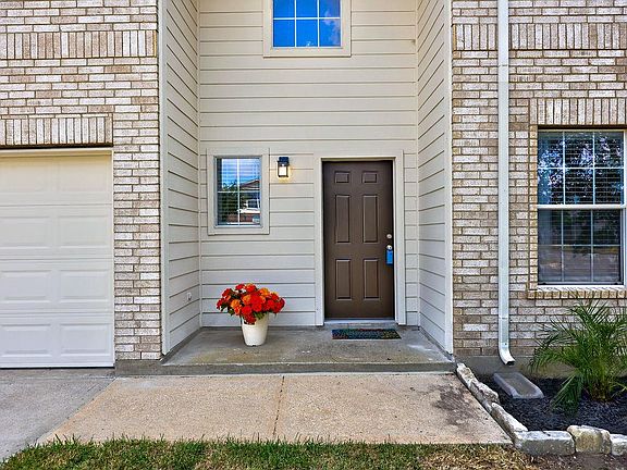 Charming Family Home with a Spacious Yard. Step into this lovely 4-bedroom, 2.5-bathroom, two-story home in the heart of Hutto. Built in 2004, this house features a highly functional floor plan with a comfortable 2,167 square feet of living space. Enjoy a large backyard perfect for relaxing or entertaining. Located in a well-established community with an attached two-car garage, this property offers plenty of room to grow and create lasting memories. Refrigerator conveys. Recent improvements include: Exterior paint 7/2025, new carpet upstairs 7/2025, new front and rear doors 7/2025, new paint in secondary bedrooms, guest bath, powder room, and laundry. New cordless 2" faux window shades throughout create luxurious privacy while allowing natural lighting. Recent paint in main areas of home + primary bed & bath (11/2024). New roof 2017, driveway repair 7/2025, luxury vinyl plank downstairs 2023, new AC 3/2023. Huttoparke community amenities include a swimmng pool, playground, covered picnic space, basketball court, and a large Community Center.