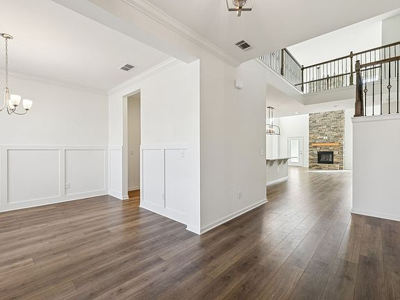 Move-In Ready & Packed with Upgrades. You’ll love this north-facing home with $105K in upgrades and two primary suites—one on each level. The chef’s kitchen is the upgraded luxury package: features a gas range with wood hood, stainless steel appliances, granite counters, and the refrigerator plus washer & dryer stay. A striking two-story stone fireplace anchors the open living area, highlighted by hardwood floors, oak-tread stairs with iron spindles, and a loft overlooking the entry. The English-Revival exterior showcases a premium brick-and-stone elevation. Throughout the home you’ll find soft-close cabinetry, upgraded carpet pad, and a handy drop zone valet bench at the garage entrance.