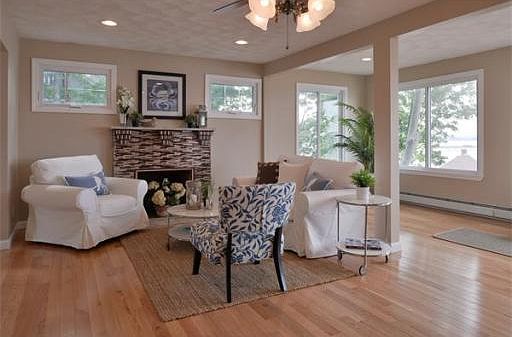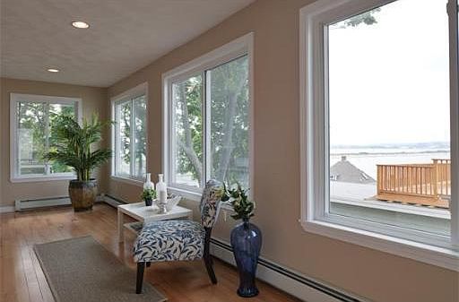 Million Dollar view from this recently renovated Cape featuring living room with fireplace and wall of windows to Nahant Bay and Ocean views, large dining room or den/office, new stainless and granite kitchen, hardwood floors, 2 full baths, 3 bedrooms, exclusive yard area, patio and 2-car parking. Walk out full basement has potential to be completed and has interior access as well. Live in this new, seaside residence in association of three single family homes and condos (in three-unit building) with parking, decks and outdoor space. A wonderful opportunity for year-round or vacation living!
