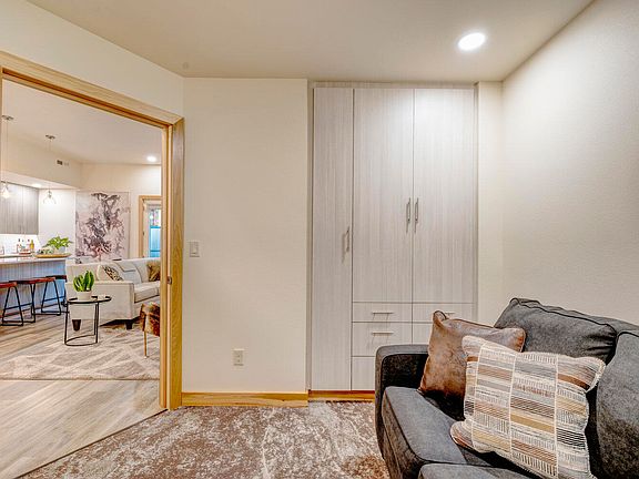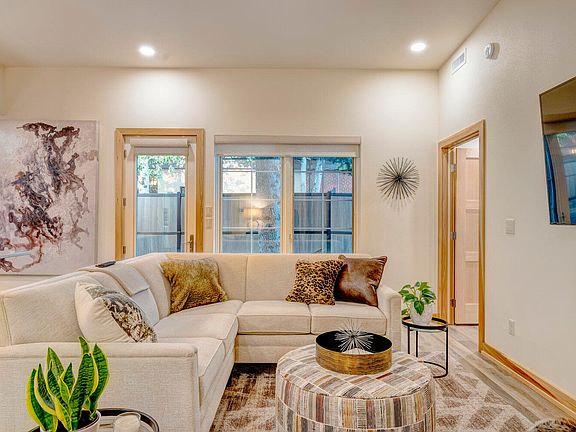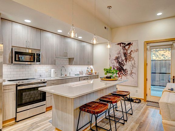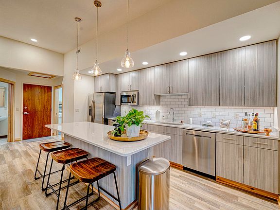 Enjoy easy, maintenance-free living in this beautifully designed end unit, complete with a security system for peace of mind. This single-level condo offers two bedrooms, two bathrooms, and a convenient laundry room with a sink. The modern kitchen boasts an 8-foot quartz island, creating a spacious and elegant feel. Additional features include extra insulation for year-round comfort, 9-foot ceilings, a walk-in shower, an electric fireplace, and solid wood doors throughout. The finished garage stays cool in the summer and warm in the winter, providing additional convenience. Available fully furnished, including artwork, this property also comes with a storage unit and access to a fitness center.