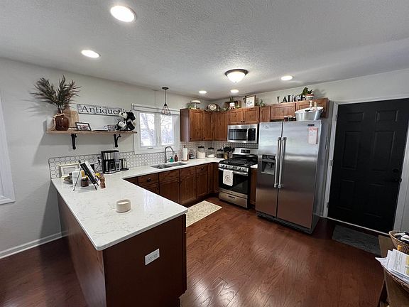 The front door of this immaculate home welcomes you into the open living, dining and kitchen which all look out at the breathtaking views of the river. The main bedroom has walk in closet, full bath with soaking tub and dual vanities. The main level also consists of walk in pantry laundry room, second bedroom, updated main bath, additional half bath and custom drop zone that leads out to the covered porch which is a phenomenal place to grill or just sit out and enjoy the rain and your morning coffee. Lower level invites you into a an open family room with great natural light, has two large bedrooms, laundry room, bath and storage rooms. Additional amenities include 2 stall attached garage, 3 stall detached garage with numerous options for storage or workshop, and fire pit area that looks out to the river. The home has undergone an extensive remodel including windows, roof, kitchen including quartz countertops and cabinets, flooring throughout, furnace, and all baths. This home really needs nothing other than new owners, you will not disappointed!