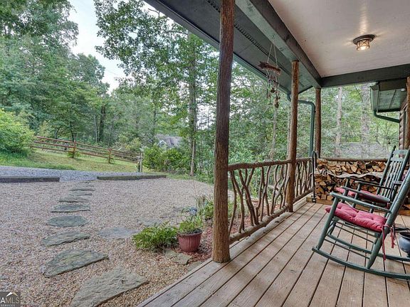 Appointment Required. Here is your immaculately maintained log-sided cabin nestled in the serene Northeast Georgia Mountains, offering an open floor plan! The kitchen features custom cabinetry, granite countertops, and stainless-steel appliances, connecting to a spacious living room with a stack-stone wood-burning fireplace. The main-level has master suite has ensuite with a beautifully tiled shower. Other bedroom has bump out for a reading nook, home office or sitting area. Main-level living with three bedrooms, two baths, and convenient laundry access, designed for easy and gentle entry. The lower level is ideal for guests or extra living space, boasting a bedroom, full bath, and a kitchenette. Previous upgrades include a newer roof, paint, flooring, an updated new stone fireplace, hvac and much more, ensuring a move-in-ready experience. Nature lovers will enjoy the outdoor extras that include a firepit & patio, a screened back porch, and an additional side deck-perfect for enjoying evenings. A well-crafted chicken coop provides fresh eggs daily for those embracing a self-sufficient lifestyle. The property also features a one-car carport and a low-maintenance yard. No KNOWN RESTRICTIONS, perfect for a rental, vacation home or full time living. Cabin has highspeed fiber internet! Conveniently located near Young Harris, the cabin is just 3.3 miles from Young Harris College, 2.7 miles from Brasstown Valley Resort, and close to Lake Chatuge and Crane Creek Vineyards. This mountain retreat combines rustic charm with modern comforts-a must-see to truly appreciate.