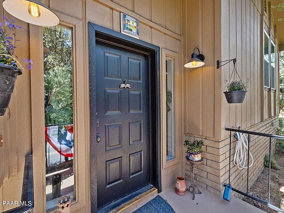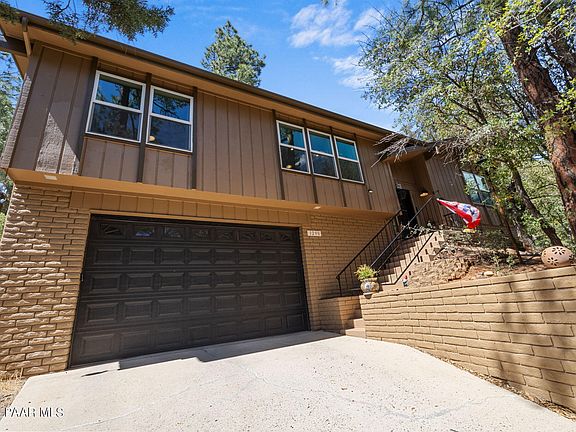 Nestled amidst the serene beauty of Prescott's pristine pines, this charming 3-bedroom, 2-bathroom home seamlessly combines rustic tranquility with modern convenience. Just minutes from downtown, it offers a retreat-like ambiance while maintaining easy access to the heart of the city. Step inside to discover a spacious living room and a cozy family room featuring a wood-burning fireplace, perfect for intimate gatherings or quiet evenings by the fire. Newly added, the expansive outside deck beckons for al fresco dining and entertaining under the starlit Arizona skies. Recently remodeled with exquisite attention to detail, the gourmet kitchen and bathrooms exude luxury, boasting high-end finishes and fixtures.