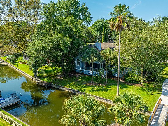 Beautiful one-story 4 bedroom, 2 1/2 bath home on the water with private dock in Hidden Lakes on the Canal in Mount Pleasant. Enter the home to a charming foyer with home office and formal dining room with cathedral ceilings; a beautiful eat-in-kitchen and great room anchored by a fireplace and built-in bookshelves. Two secondary bedrooms and a hall bath are also on the first floor, and there is a large room over the garage featuring a half bath- ideal for a 4th bedroom, Media Room, or Billiards Room. The backyard includes a large screened-in porch overlooking the canal. This home is situated next to the community pool, clubhouse, and tennis courts, and is in one of the most desirable neighborhoods in Mount Pleasant. Walk to shops & restaurants and bike to the beach!