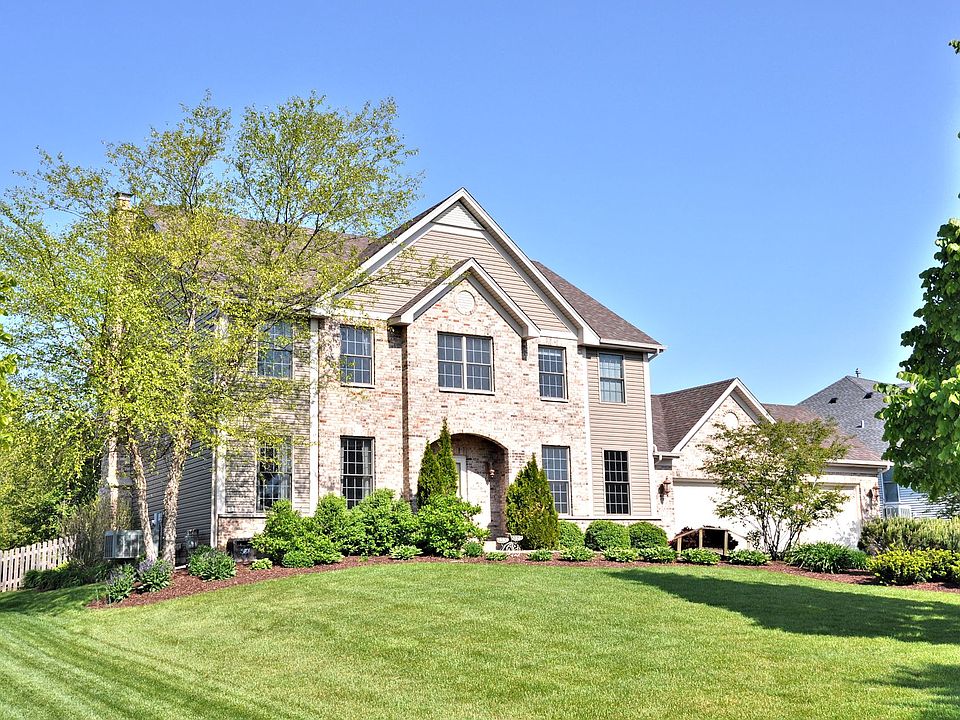Striking curb appeal, wonderful garden landscape with large private yard. beautifully maintained home. New roof, siding and gutters. Two story foyer, 9' ceilings, huge kitchen with cherry cabinets and center island. Master suite with tray ceiling, walk-in closets, vaulted bath. Double sink vanity in hall bath with separate shower area. Full finished basement with 5th bedroom, or office, full bath, fireplace. 3 car garage, paver patio, fenced yard. Desired Timber Trails Elementary